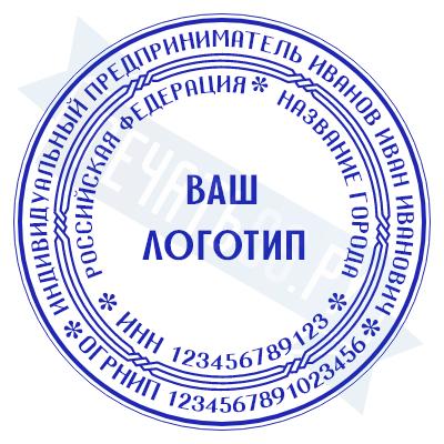 - Печать ИП с логотипом на металлической оснастке Диско с подушкой, 40мм по цене 3848 рублей и еще 68 видов печатей с логотипом
