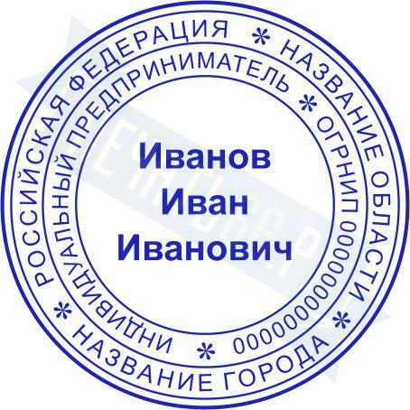 Стандартная печать ИП на ручной металлической оснастке